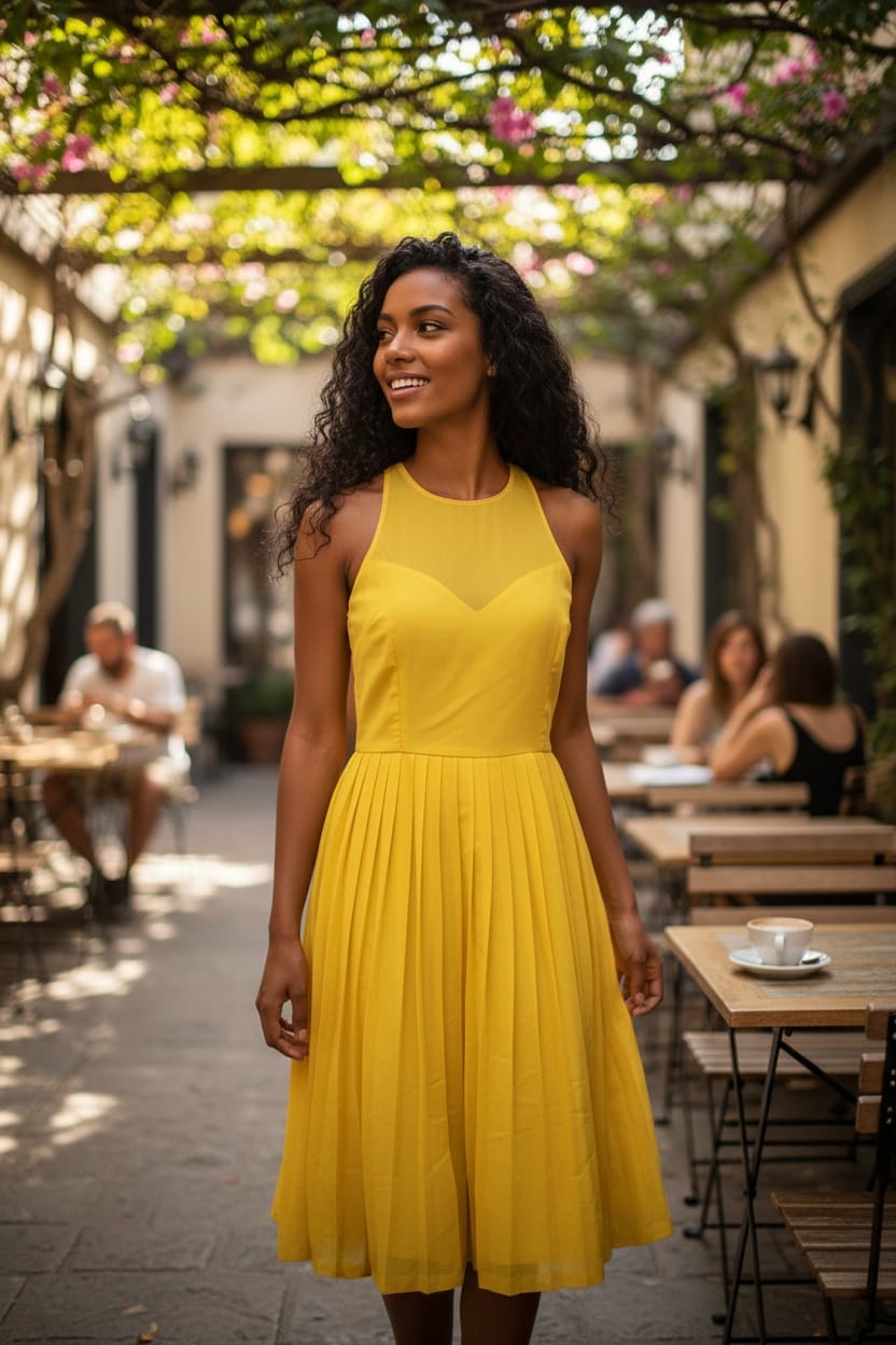 Vestido Amarelo Plissado