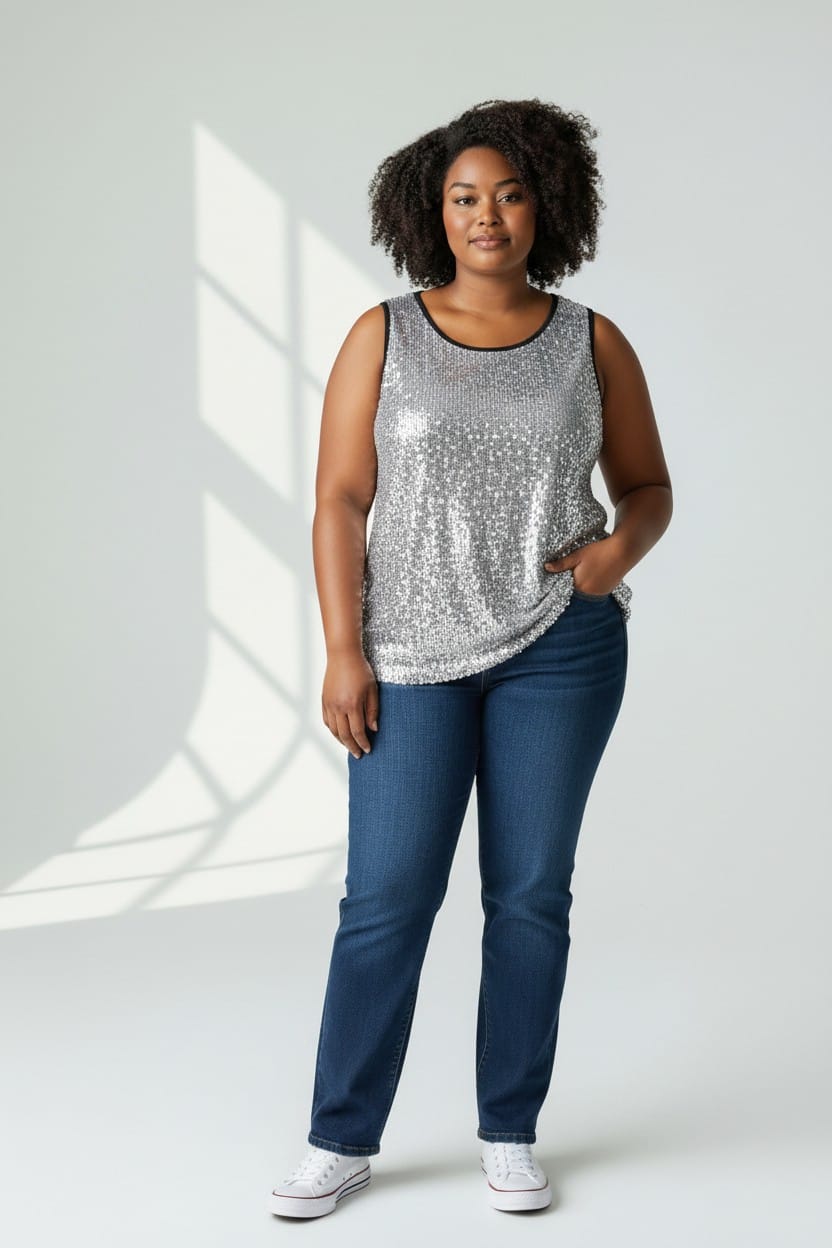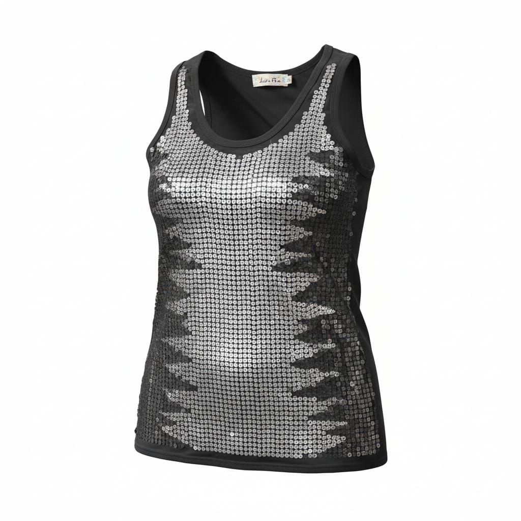 Regata Paetês Preto e Prata